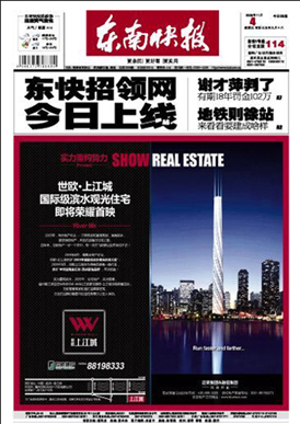《东南快报》是经国家新闻出版署批准,由东南快报社编辑出版,由中国国际贸易促进会福建省分会主管主办,四开日均48版的省级都市报。属综合类市民生活报。 《东南快报》立足福建,面向东南沿海,快速报道本地及国内外时政要闻、外向型经济发展、文化体育走向,同时关注城市生活的方方面面,并致力挖掘各类新闻的纵深价值,努力架起党和政府与人民群众沟通的桥梁,既当好党的喉舌,又服务于读者和企业,服务予市场。